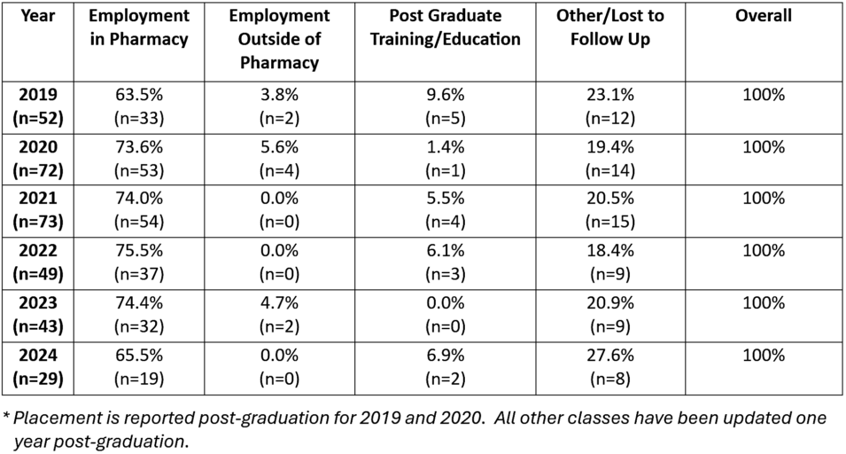 Should COP Fall-to-Fall Retention Rate fall below the threshold of acceptability, the institution will first gather and analyze information by conducting a detailed a root-cause analysis of the cohort. Using the data from the analysis, the institution will identify key areas for improvement. COP would also also review outcomes assessment data for those cohort years and determine possible improvements in student learning outcomes. This analysis will also include review of internal policies, processes, and suggested pathways that may have an adverse effect on retention rates. Based on the findings of the analysis, the institution will focus on implementing and measuring institutional changes aimed at increasing student achievement measures. Since there is a one-year delay in measuring Fall-to-Fall Retention Rates, this process would continue until the PharmD program has two consecutive cohorts with Fall-to-Fall Retention Rates above 85%.